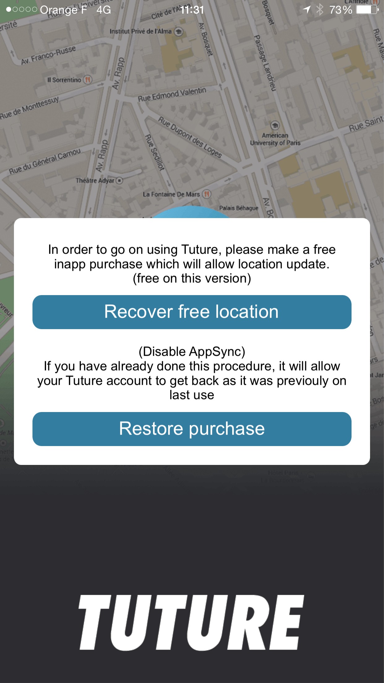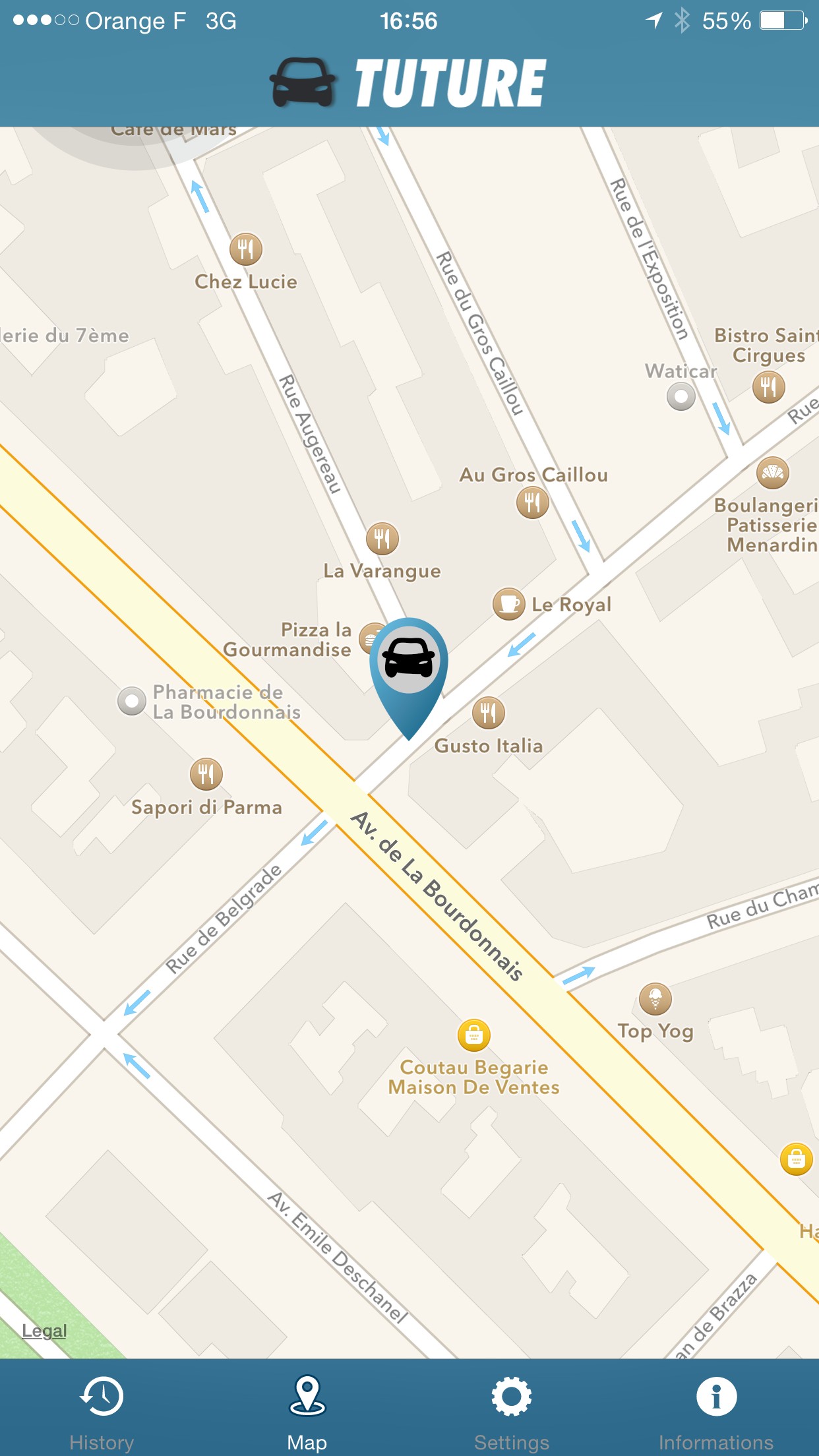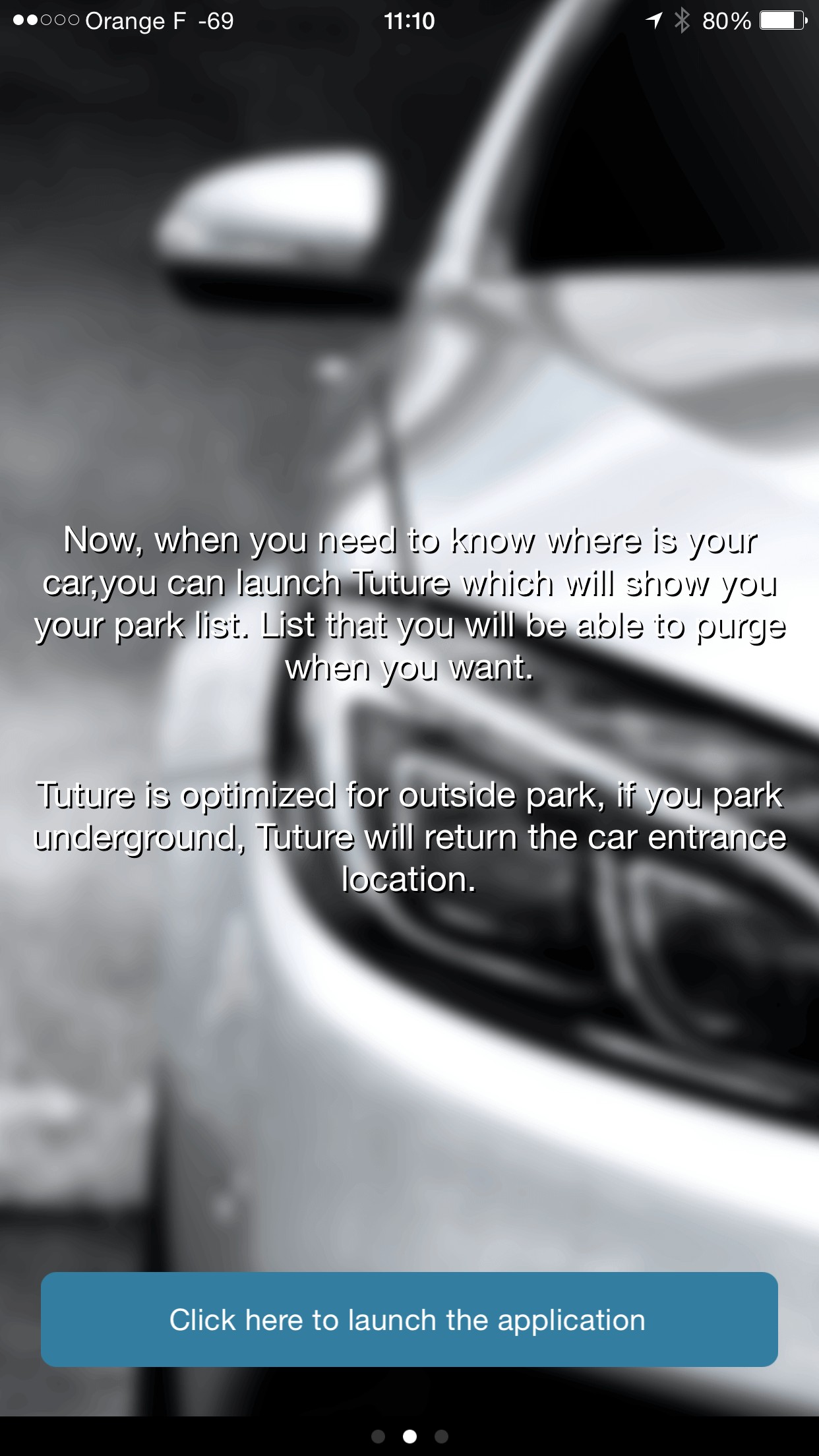 Tuture is an app that records, without any intervention, your position when you leave your car. It doesn't need any click or accessories to work automatically. If you enter a closed parking lot, Tuture will show you the parking entrance, the car entry point will be saved. If the app is disabled (low battery, app closed by mistake...), you will receive local alerts and you can click on them to relaunch the app.